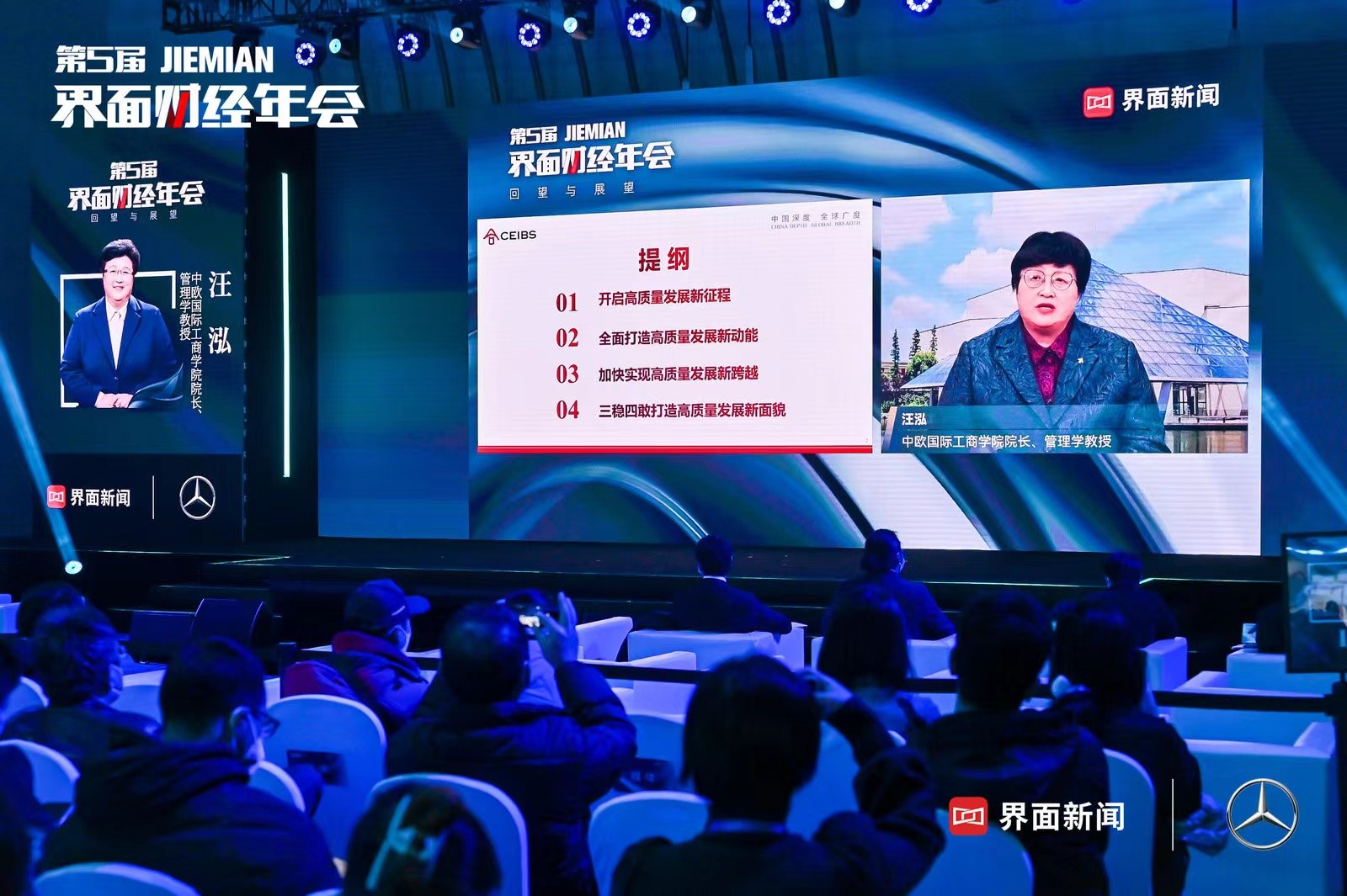 中欧国际工商学院院长、管理学教授汪泓表示,中国经济的高质量发展在全世界范围内具有较大优势,科技创新实力、对外开放战略等方面引领世界。而在发展过程中,中国经济也存在发展不平衡、不充分,高质量科技创新“卡脖子”以及领军型科技人才不足等问题。为加快实现高质量发展新跨越,应突出“三稳”“四敢”,坚持构建高水平社会主义市场经济体制、推进高水平对外开放、建设现代化产业体系以及加快建设国家战略人才力量,全力打造高质量发展新面貌。