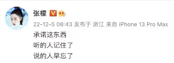 曾经的一线小花张檬与小五结婚的中韩夫妇名头,一直是其直播的噱头之一。就在几天前,刚刚和小五结婚才几个月的张檬,忽然在社交平台上发出一则令人猜疑的动态“承诺这东西,听的人记住了,说的人早忘了”,秒删过后,她又发布了一条澄清动态,称只是自己和小五吵架了,想发泄下情绪,忘记切换小号了。