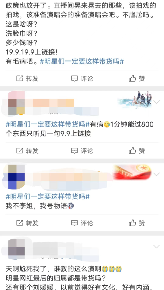 而在“明星们一定要这样带货吗”的微博热搜词条下,刺激故事与鸡汤文学,也正在火爆上演。