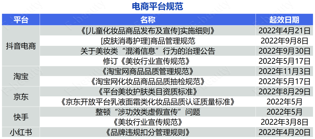 今年,主流电商平台抖音、淘宝、京东、快手,以及美妆内容集聚地小红书平台均出台了系列规范管理细则。