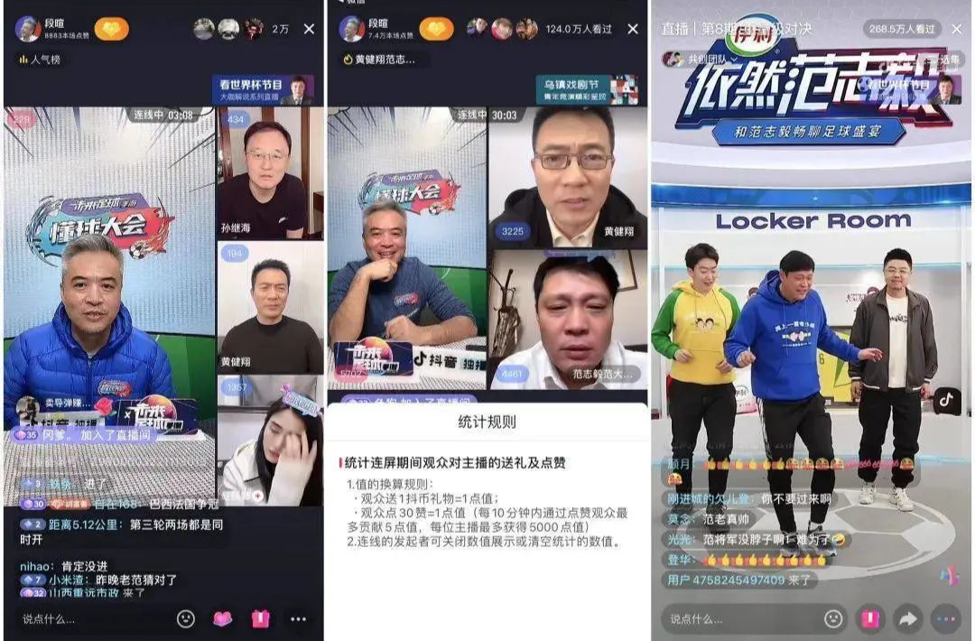 观察抖音本届世界杯期间的内容布局,其重点放在了引入“大咖解说+自制节目”上,这更接近传统媒体的内容打法。