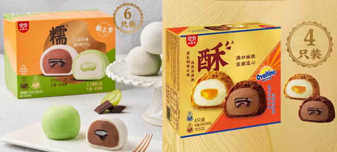 除了个体门店跟风上新外,大品牌也看中了这个商机。作为在中国盘踞多年的企业,和路雪于今年推出首款甜点系冰淇淋,并且涵盖泡芙、大福两种品类。和路雪认为,“近年来消费者在口味上越来越追求新鲜感,基于对市场的敏锐洞察和强大的研发团队,品牌将冰淇淋结合烘焙,开辟新颖形态的泡芙冰淇淋、大福冰淇淋,在口味上也不再局限于以往经典大众口味,不断开发和挖掘诸如葡萄芝士、厚乳奶黄、芋头流心等新口味,实践白领下午茶、闺蜜聚餐、饱足饭后都能来一份冰淇淋的场景,使得冰淇淋不再只是夏天消暑的功能性产品。”