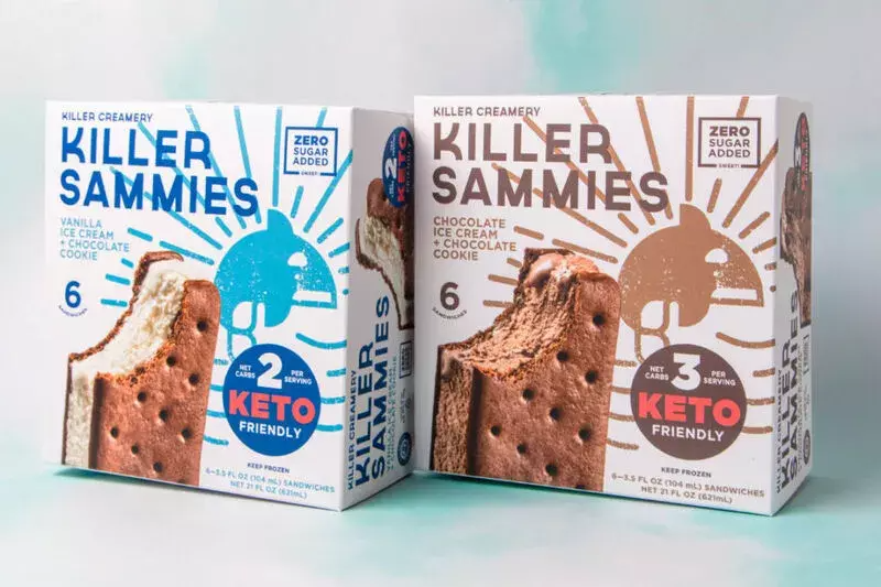 虽然冰淇淋一直被视作高糖产品,但从健康的角度塑造也并非全无可能。Killer Creamery推出了一款零糖冰淇淋三明治,不含麸质和生酮,每份仅含两到三克净碳水化合物和五克蛋白质。创始人兼首席执行官Louis Armstrong说:" 在开发Killer Sammies时,我们保持了高标准,只使用优质原料,不加糖或人造香料,因此人们可以不受限制地尽情享受。”