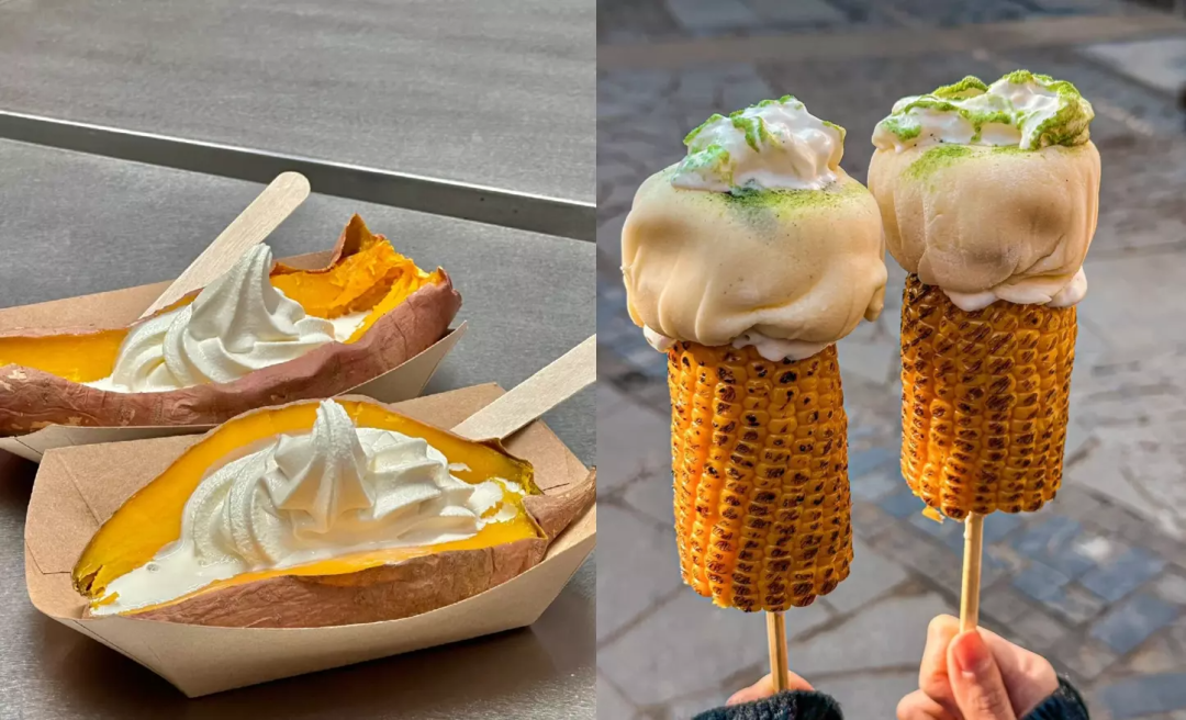 不同于和餐饮搭配的暗黑风,冰淇淋和小吃组合的高颜值总会成为社交平台上的热门话题,MUJI新出的烤红薯冰淇淋,在小红书搜索同类商品会出现1万+篇笔记,从去年到今年,这一话题热度不减。同样是街头小吃,东北地区的烤苞米冰淇淋也是“铁汉柔情”。