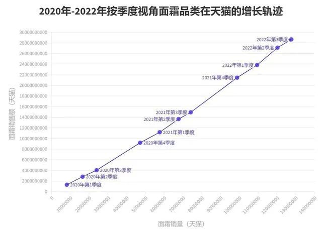 从不同平台来看,在淘宝/天猫,据数据平台数里话监测,自2020年第一季度,面霜在天猫的销量持续走高,至今年第三季度已在天猫平台上销售逾1.3亿件产品,录得超过280亿的销售额。