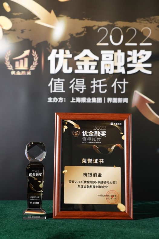 杭银消费金融凭借2022年在金融科技领域的突出表现,获评“优金融奖•卓越机构大奖”之“年度金融科技创新企业。