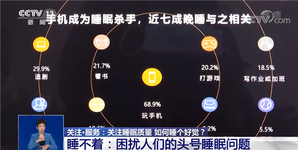 伴随着社会现代化的进程,人们面对显示屏幕的时间也逐渐增加,随之而来的健康问题也越发明显。据央视新闻报道显示,超过七成的成年人在睡前会长时间使用手机,由此引发的用眼与睡眠问题成为新的社会痛点。将近四成的成年人受到失眠问题的困扰,其中超过七成与手机使用有关。