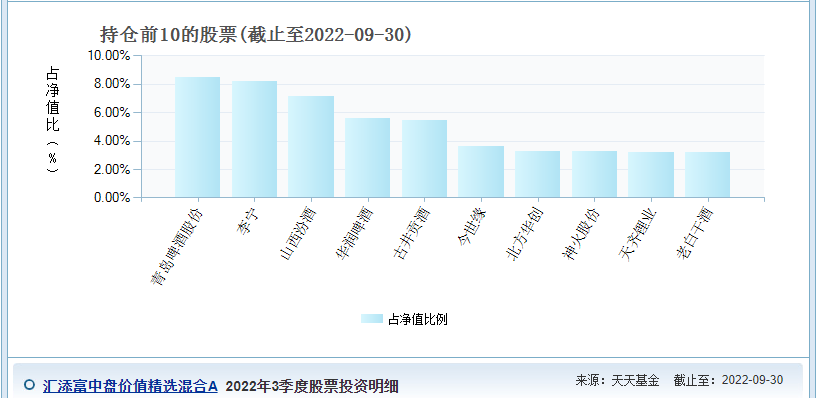 从2022年3季度持仓看,这只基金前十股票中,港股只剩下3只:青啤、李宁与华润啤酒,净值占比22.24%;白酒则有4只:汾酒、古井贡、今世缘、老白干,净值占比19.36%;剩下的3只股票,北方华创(002371.SZ)、赣锋锂业(002460.SZ)、神火股份(000933.SZ),占比9.68%。