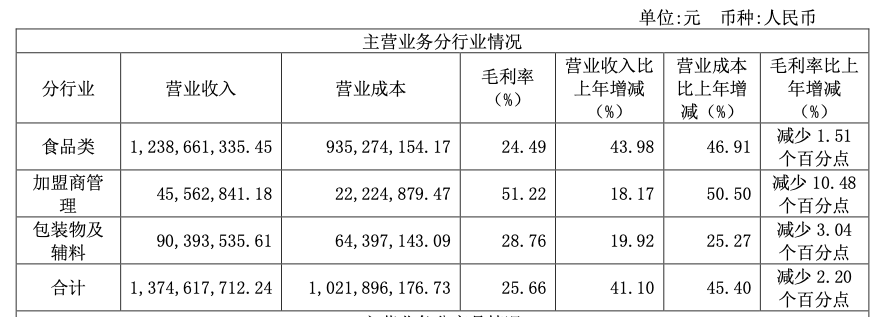 从财报看到,特许加盟店为巴比食品带来了11.21亿的收入。也就是说,上述提到的食品类收入,均为巴比食品向加盟商售出所带来的。
