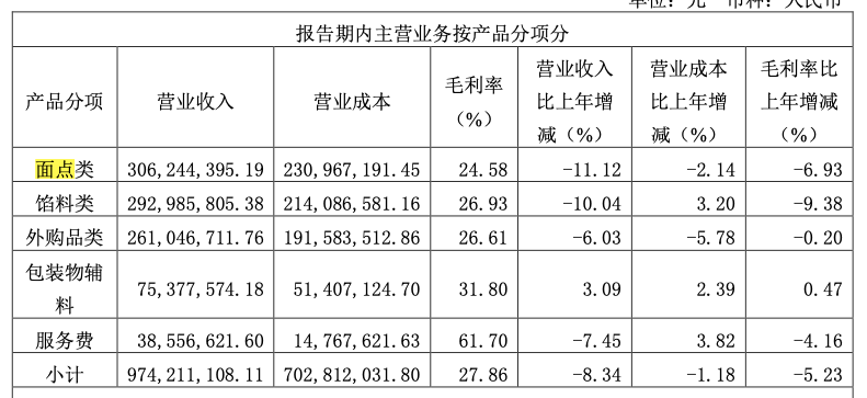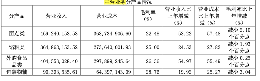 2021年,巴比食品面点类产品毛利下降了2.1%,而馅料类毛利下降了1.93%。