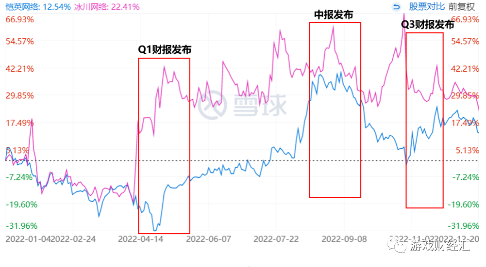图:冰川网络、恺英网络年初至今股价走势;来源:雪球