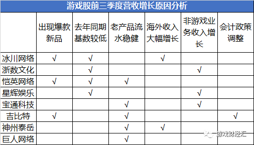 第一,去年同期基数较低,比如冰川网络、浙数文化、星辉娱乐、恺英网络等。