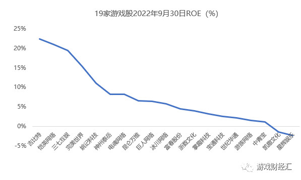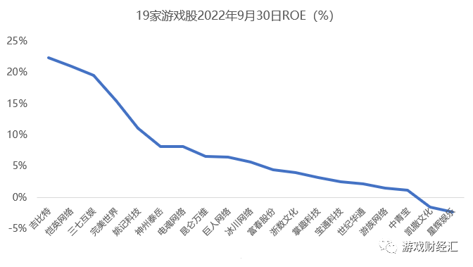 从ROE的角度,我们发现吉比特、恺英网络、三七互娱、完美世界、姚记科技五家公司的ROE超过了10%,吉比特、恺英网络两家ROE超过了20%。