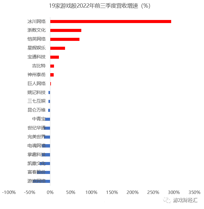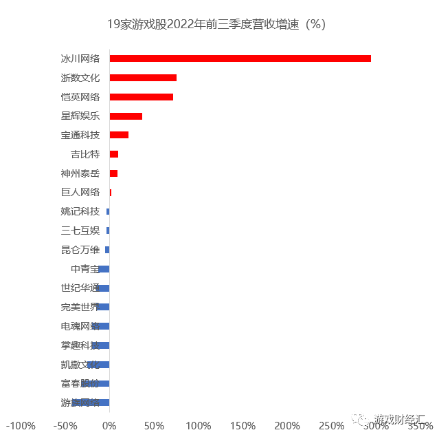 收入增幅最大的是此前默默无闻的冰川网络,前三季度,该公司总营收较去年同期翻了近3倍。其次是浙数文化和恺英网络,两家公司营收同比增幅也均超过70%。