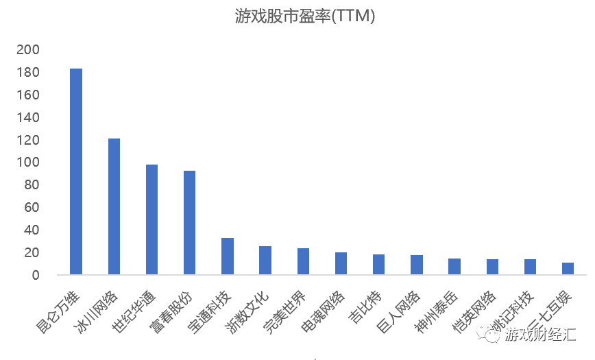 而跌幅最大的三支游戏股目前估值整体偏高。凯撒文化市盈率为负数,世纪华通目前滚动市盈率接近100,宝通科技估值相对最低,但也超过了30。