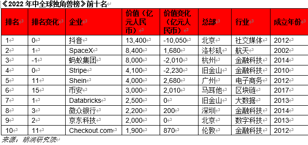 而在近期发布的《2022胡润世界500强》中,字节跳动的排名首次超越阿里,成为了中国上榜企业的第三名,估值达到1.45万亿元。