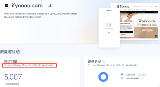 但IfYooou目前面临着流量下滑的危机。SimilarWeb数据显示,IfYooou在6月的网站访问量有351.7K,7月增长到了436.7k,但是到了8月流量开始直线下跌,降幅将近60%,回落到了177.1k,到了10月,流量仅有5007了。