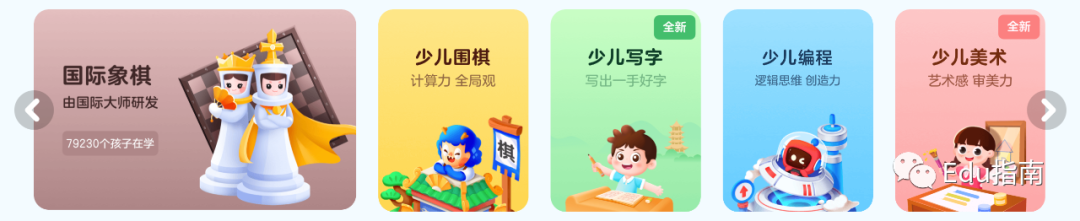 更具体的课程服务包括:人文创作、科学思维、编程与机器人、演讲与口才、国际象棋等学习产品,定价从数十元的录播课程到千元级别的直播课之间。