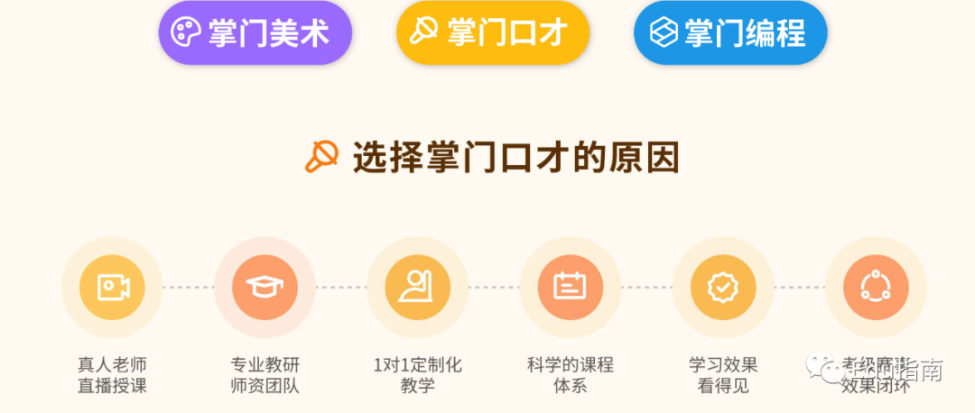 掌门智能公司于去年推出口才、美术、编程三大素质教育课程。根据当前的产品模式,例如口才课程,采用1对1定制化直播授课。可以看到在素质教育业务新产品上,该公司延续了此前学科类教育相对个性化的服务方式。这也意味着企业在供给端需要投入更重成本的师资等资源,而学生用户端需要付出相对更高的价格。