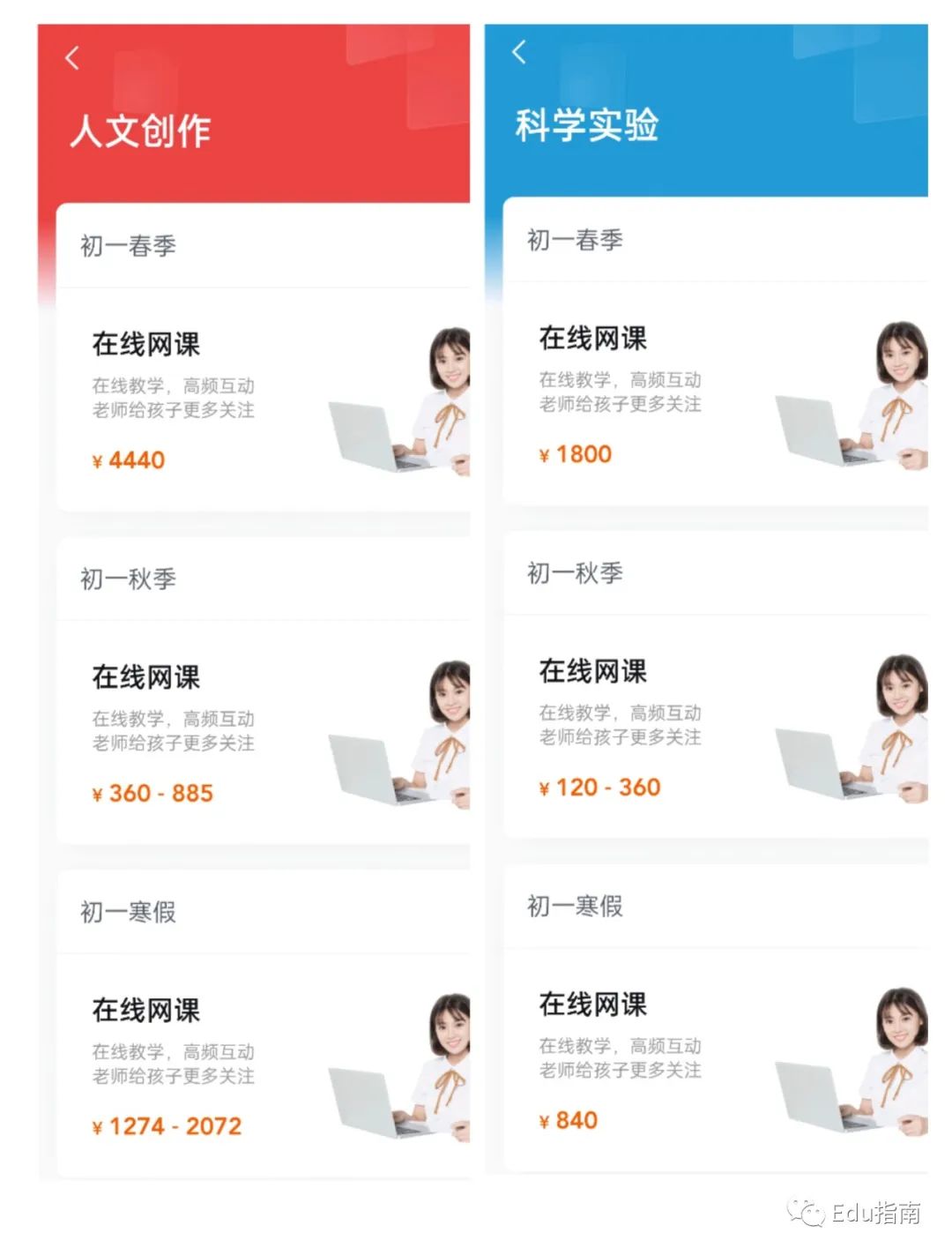 该类课程定价通常在数百元到数千元之间,例如人文创作类素养课程定价在360元到4000元以上不等,而科学实验类课程定价在120元到1800元不等。