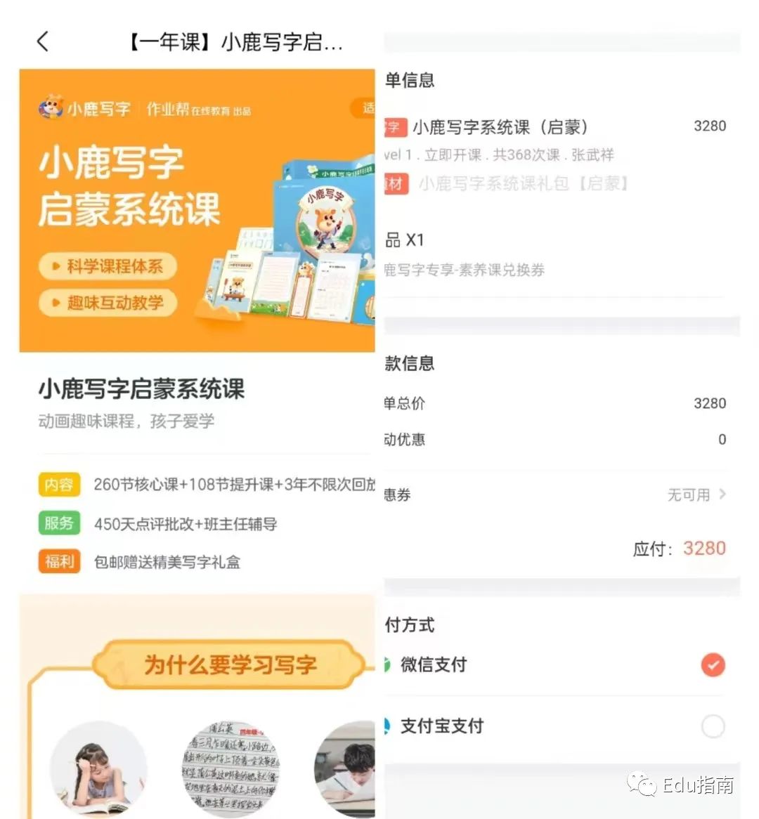 当前该公司旗下小鹿写字App,应用内提供的付费产品包括写字课程,定价在千元不等。例如“小鹿写字·启蒙系统课”,课程以视频内容为主,定价为3280元。