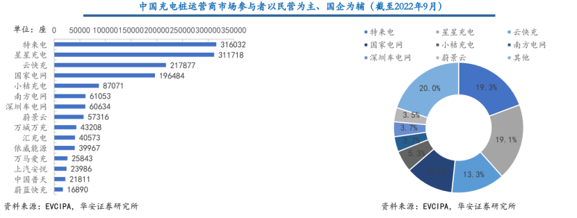 截至2022年9月,特来电、星星充电、云快充、国家电网四家运营商贡献63.7%的市场份额。