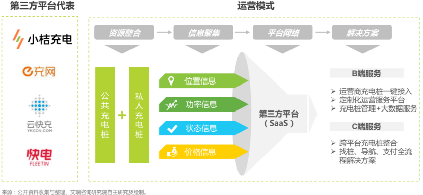 在第三方充电服务平台主导模式下,充电平台一般不直接参与充电桩的投资建设,多为轻资产运营。通过自身资源整合能力将各大运营商的充电桩接入自家SaaS平台,提供智能化管理,大数据服务。协助运营商“引流”并提供后续运维服务,盈利来源为运营商服务费分成及相关增值服务费。