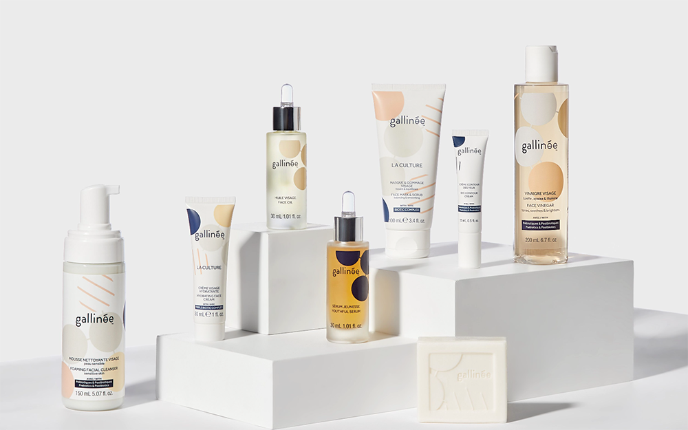 Gallinée产品主打含有益生元、益生菌和乳酸等成分。目前,其已有精华、爽肤水、洁面、洗发水等17种产品,涵盖护肤、身体护理、护发和营养补充品多个类别,主要在英国和法国销售。