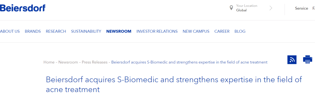 12月16日,妮维雅(Nivea)母公司、德国个人护理用品巨头 Beiersdorf (拜尔斯道夫)集团宣布,公司已经收购比利时生物科技公司 S-Biomedic 的多数股权。具体收购价格双方暂未披露。