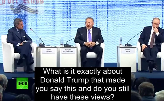 当时扎卡利亚问普京:您称特朗普是一名优秀、有天赋、聪明的候选人,特朗普身上到底有什么让您这么认为?您现在还是这种看法吗?
