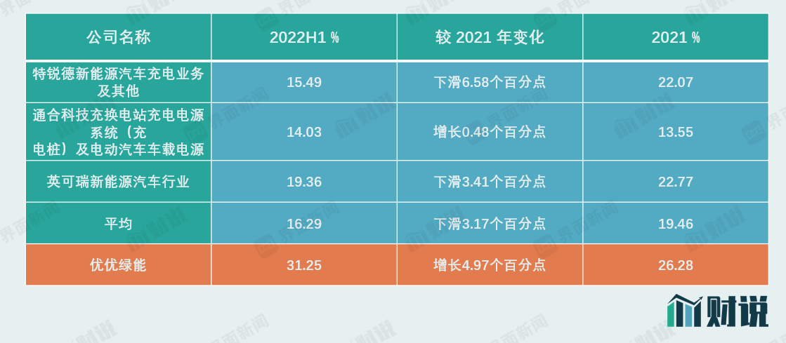 数据显示,2021年优优绿能毛利率为26.28%,高于行业平均的19.46%近7个百分点。2022年上半年,在整个行业毛利率下滑3.17个百分点的背景下,公司却逆势增长4.97个百分点至31.25%,领先行业均值近15个百分点。