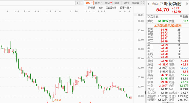 12月22日,昭衍新药(603127.SH)每股收于54.70元,涨1.37%,总市值293亿元。