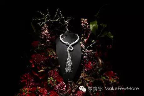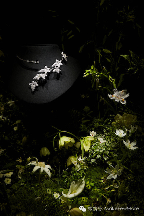 20世纪50年代建立起的宝诗龙珠宝帝国是法国大胆奢华前卫的现代珠宝代名词。2013年,宝诗龙举办了一场花园珠宝秀,邀请了Azuma Makoto进行展品设计。他从这些高端珠宝中汲取灵感,又把花艺融入进去,举办了一场绝无仅有的高级珠宝秀。花朵娇艳美丽,珠宝璀璨夺目,两种美丽交织在一起,相得益彰。