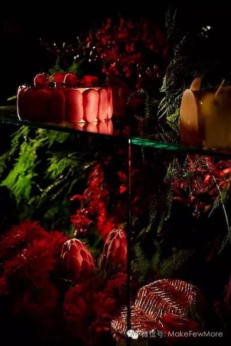 此外,PIERRE HERMé 还与Azuma Makoto合作过甜品的布景装饰。在鲜花的簇拥下。甜点的香味和美妙的歌声传来。