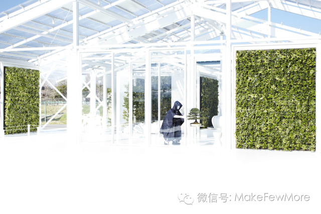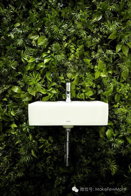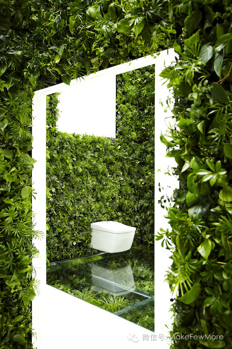 在2013年日本东京的“house vision”展会上,Azuma Makoto又将花艺融入到室内设计中。Naruse Inokuma建筑事务所携手东信花树研究所,和国际著名马桶制造商TOTO及门窗先锋YKK AP,共同打造了新概念环保浴室,以全新的方式重新界定了花园和私密空间的角色。