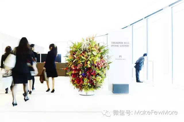 虎门之丘是日本第二高楼,在它的开幕式上,Azuma Makoto 用了美丽的鲜花对其进行了装饰。