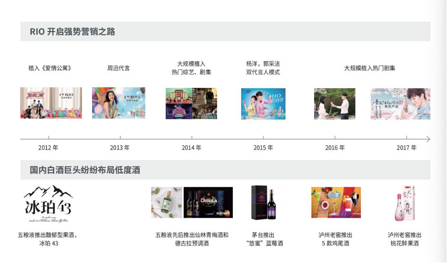 市场时代:2012年-2017年,逐步多元化,预调酒、果酒品牌借助渠道及媒介的力量开始快速崛起;
