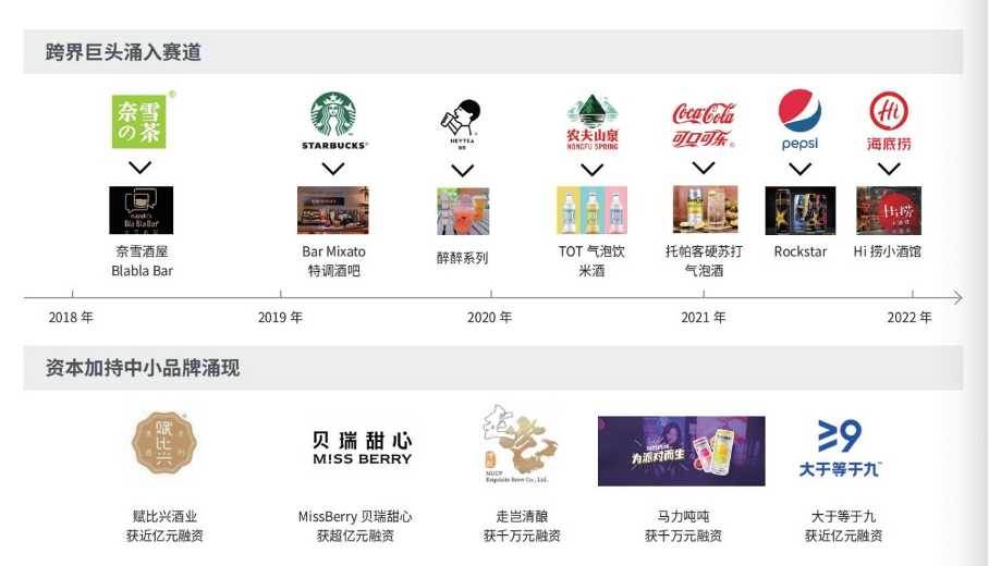 资本推动下,大批新兴年轻人的酒涌现,各种低度、气泡、果味、香甜酒饮充斥市场,营销层面花样繁多。