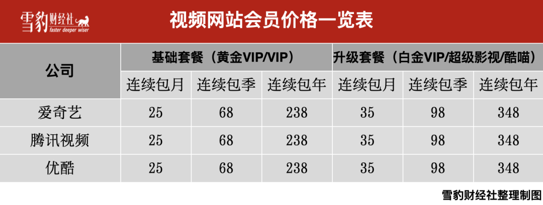 3年来,经过几轮调价,优爱腾之间保持着微妙的默契:会员价格再次回到同一起跑线。据雪豹财经社观察,爱奇艺此次价格调整后,在不含电视端会员中,爱优腾六大套餐基本处于同等价位。