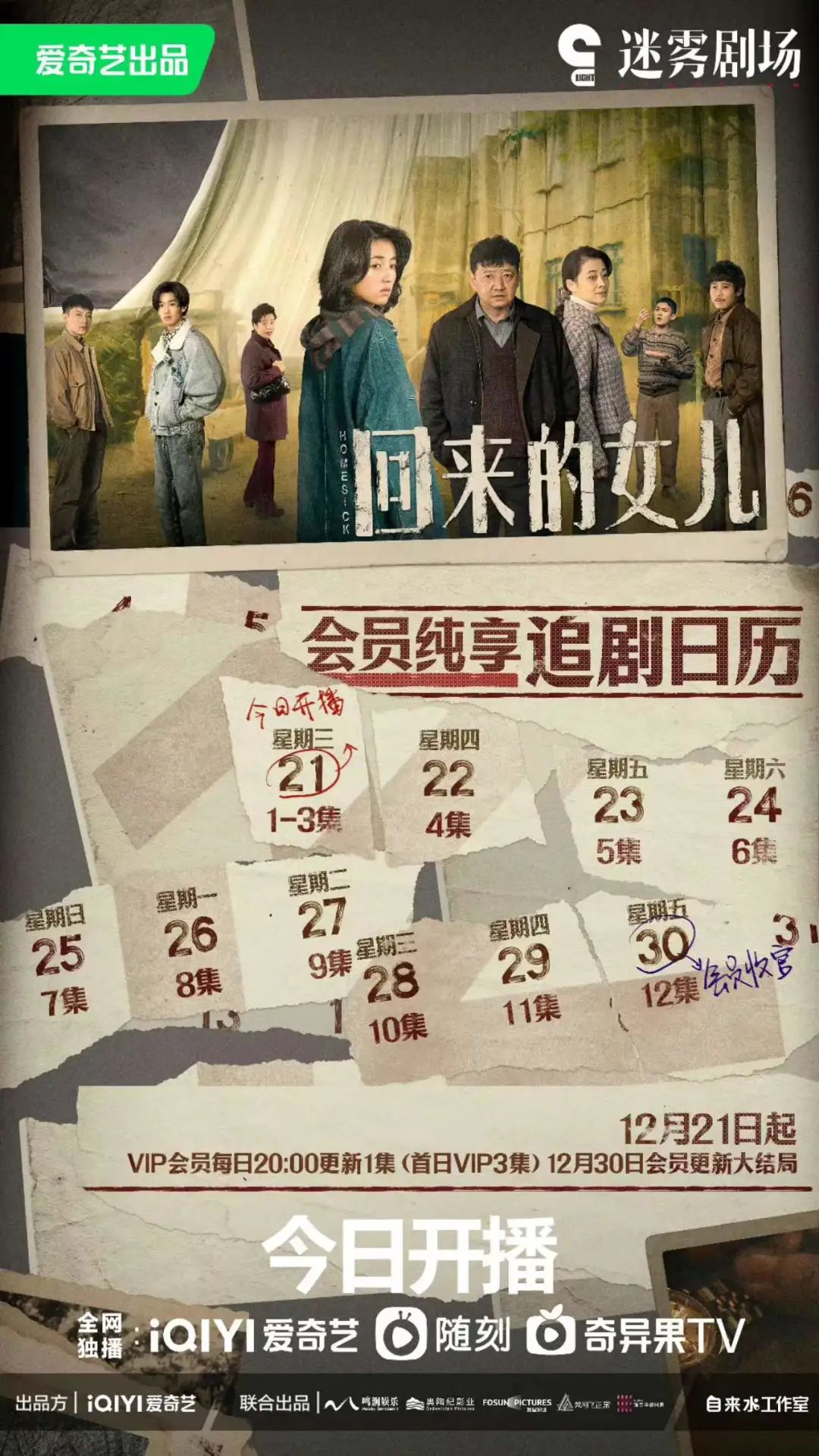 12月21日,爱奇艺“迷雾剧场”新剧《回来的女儿》开播,当天股价一度涨超22%。有网友戏称,这是“回来的女儿,回来的股价”。
