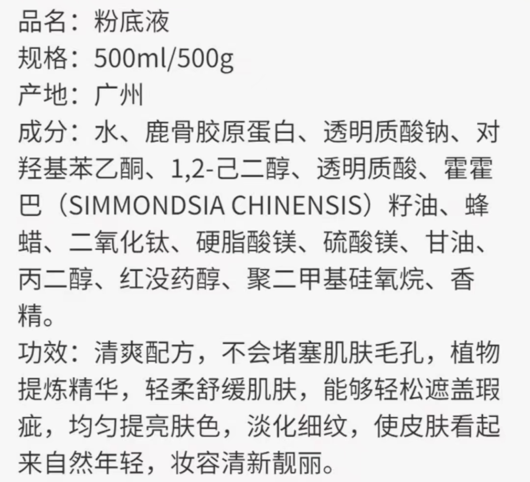 50元1斤粉底液被疑“成分表造假”