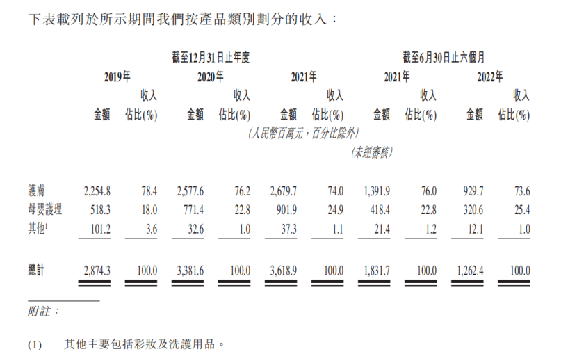 从品类来看,上美的主要业绩由护肤品类推动,护肤品类于2019年、2020年、2021年及截至2022年6月30日止六个月分别贡献了总收入的78.4%、 76.2%、74%及73.6%。