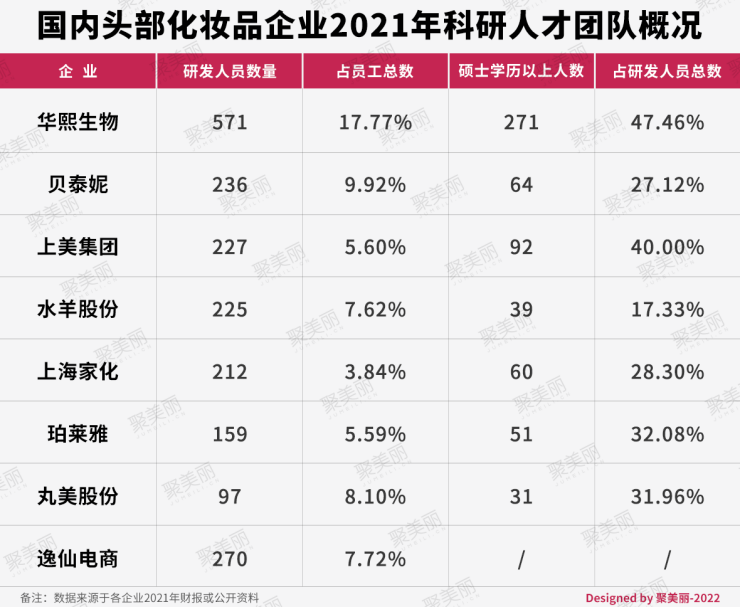 基于对产业的观察与研究,聚美丽认为,未来的品牌竞争,将逐渐从渠道竞争、运营竞争升级到技术及品牌竞争。而目前,市场出身的国货企业中,具有较强战略思维和格局的几家头部企业,基本上都在10数年前刚在本土市场站稳脚跟,就开始在技术和研发端发力。