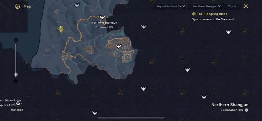 大地图目前可以看到5到6块大区域,每块大区域会有小区域的细分,并标注了探索度,从目前已经解锁的图标来看,探索方面大部分都是“熟悉的配方”,比如鸟点,野兽等。