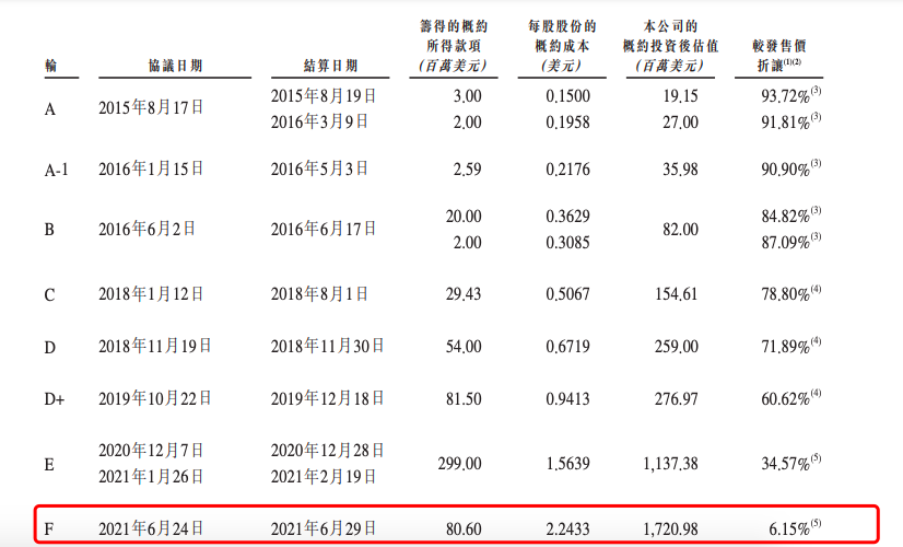 成立以来,思派健康的估值从1915万美元飙升至17.21亿美元,上涨了近90倍。完成F轮融资后,思派健康对应每股成本为2.2433美元,估值达到17.2亿美元,也就是134亿港元。