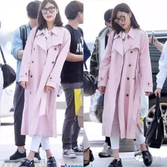 女生无法抗拒的粉色,穿起来很甜美,这种色系的风衣也变的少女起来,浅色搭浅色,粉配白很好看,不过比较适合下半身瘦瘦的女生,小皮鞋又到了点儿帅气,甜而不腻。