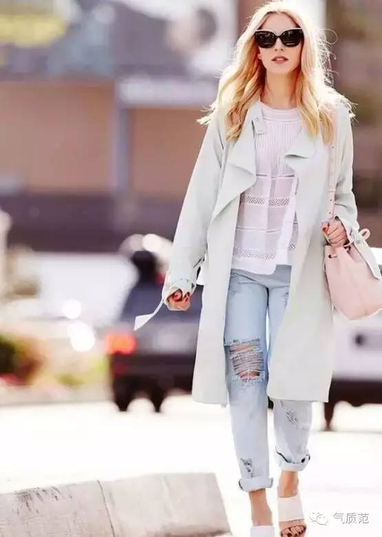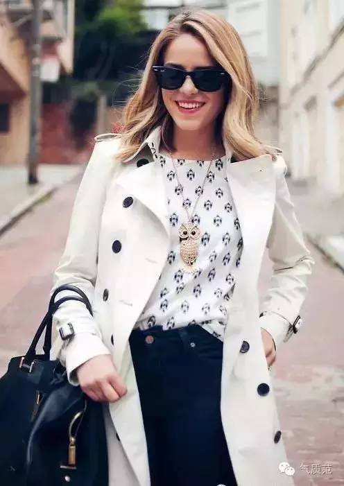 白色风衣清纯淡雅,比较适合身形较瘦的人。