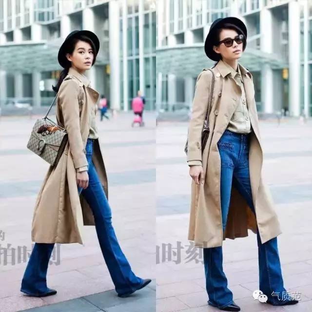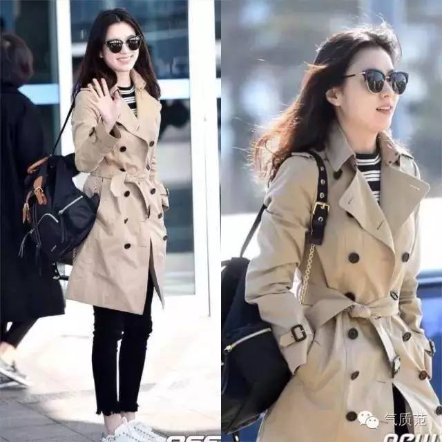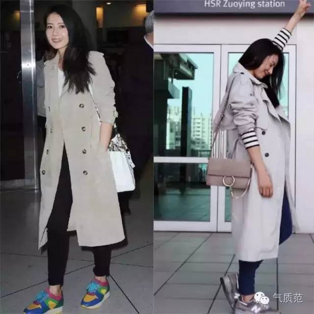 高圆圆,高圆圆的两套风衣造型,都是牛仔裤配球鞋米色、白色、灰色这些比较温和的颜色,很能衬她的气质。气质型的清新女生可以尝试下这个颜色的风衣。