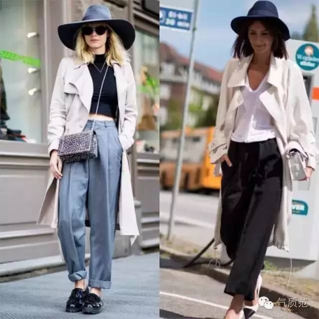 比较帅气中性的打扮,和之前介绍的搭配牛仔裤是不同的感觉 。