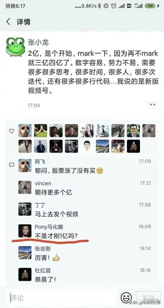 但熟悉的人都知道,这是俩大佬在唱双簧凡尔赛呢。人家的意思是,视频号数据突飞猛进,刚才1个亿,转眼2个亿,涨得比虚拟币都快。